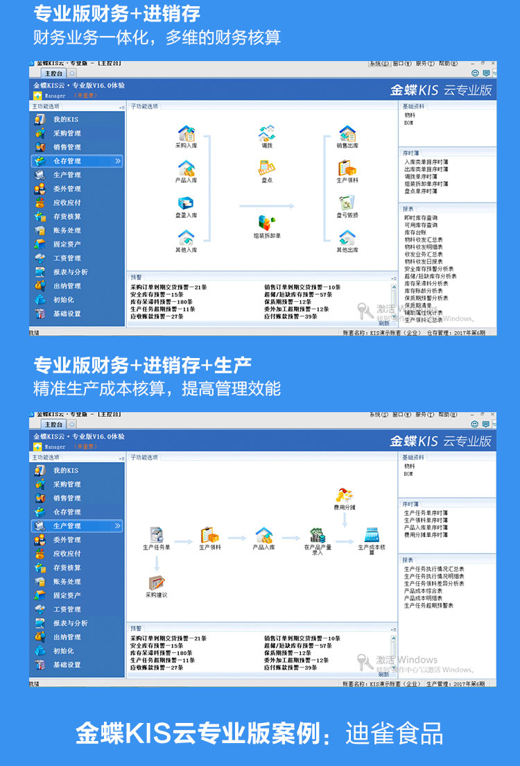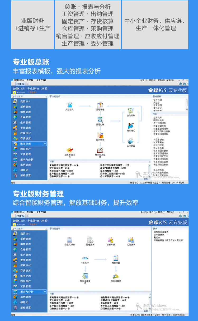 云专业模块:总账、报表、仓库管理、存货核算