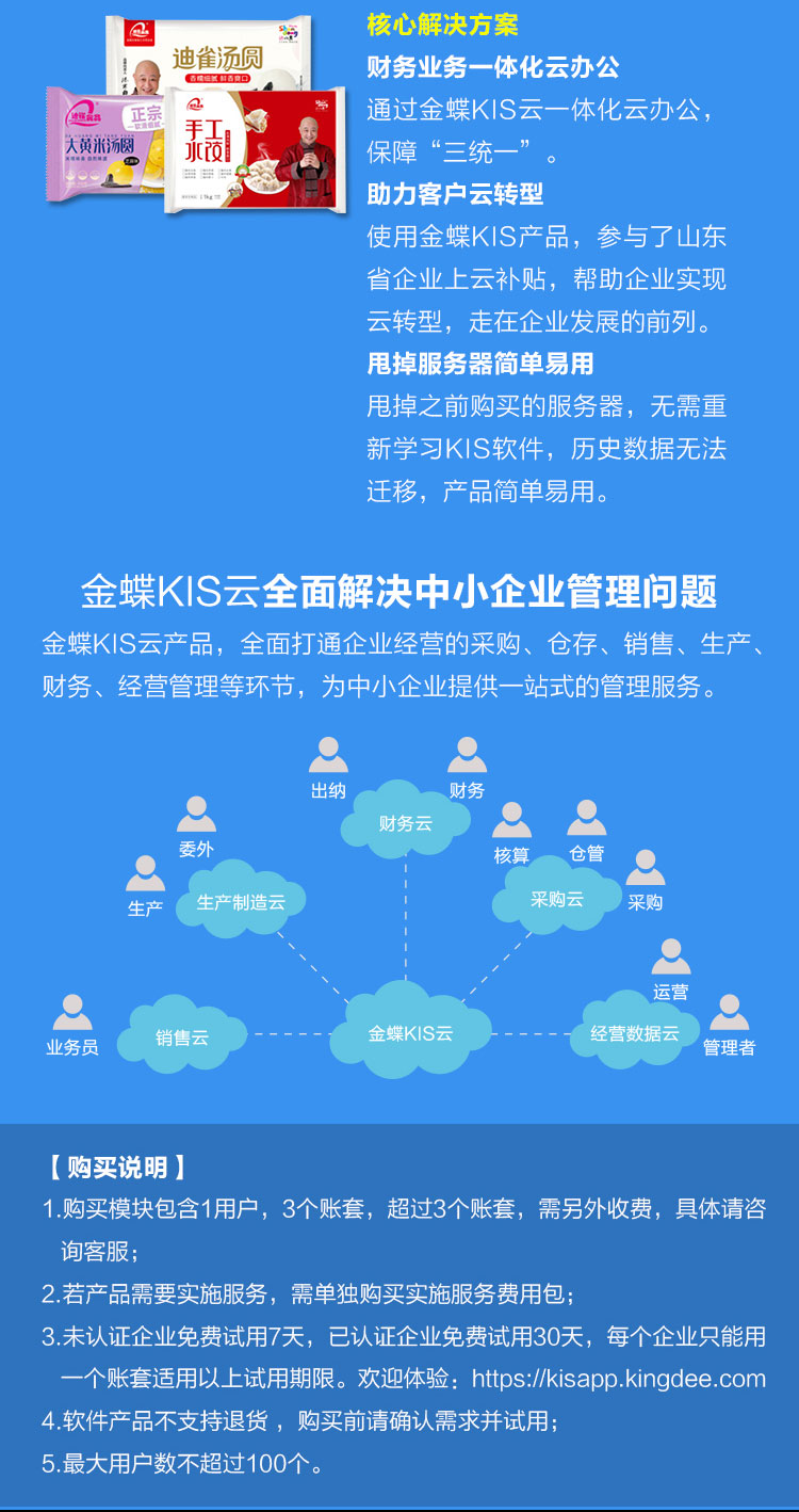 服务于从事生产销售的中小工贸企业,为企业提供集业务、财务、税务于一体精细化管理云服务